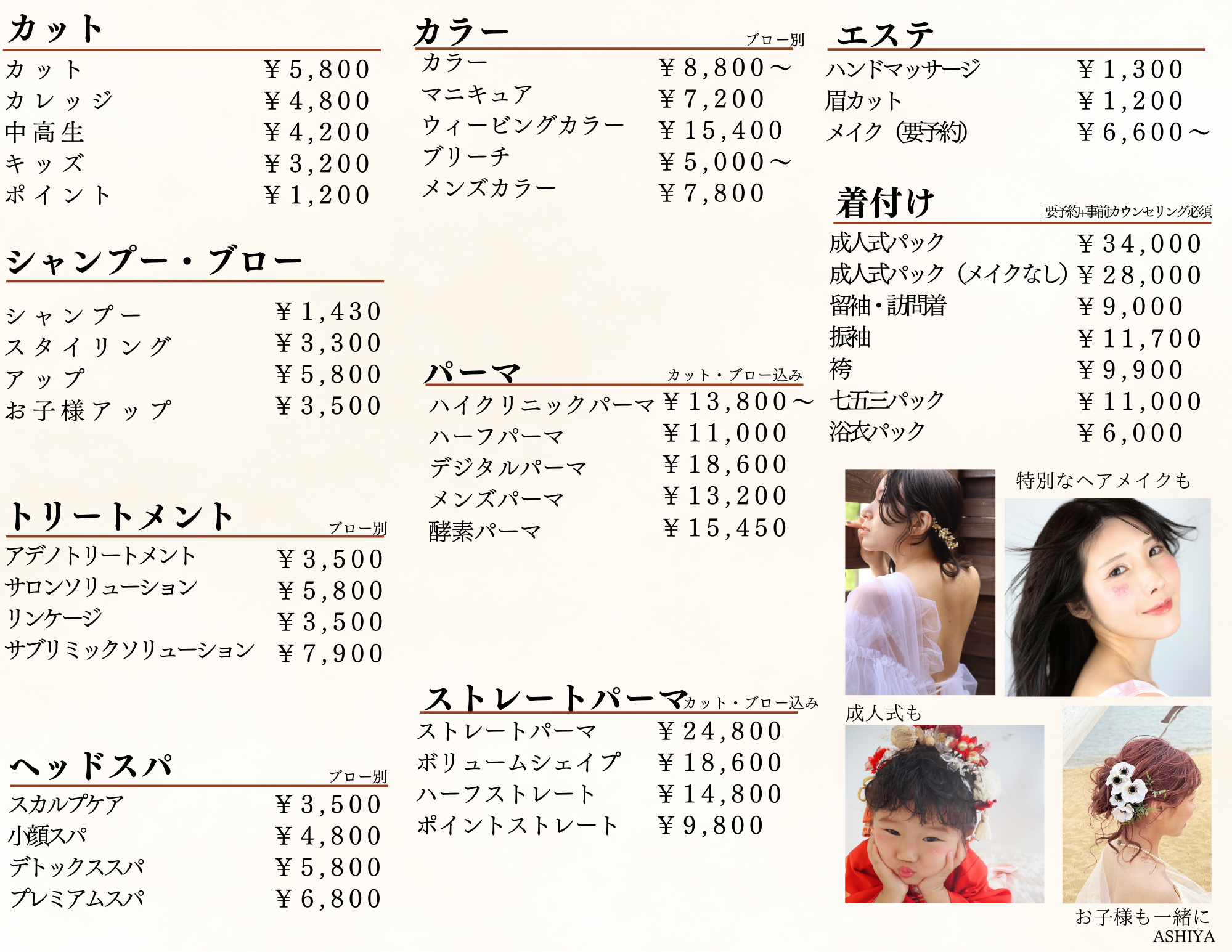 9時~17時【最終受付】カット 16時パーマ・カラー 15時